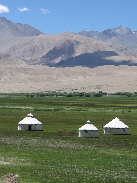 kirgiških konj. Od daleč so nas z zelenih dolin in travnikov pozdravile bele kepice – nomadske hišice po imenu jurte. Nacionalni park Tash Rabat pa skriva še en biser na svilni poti – zadnji karavanseraj pred mejo velike sosede Kitajske.