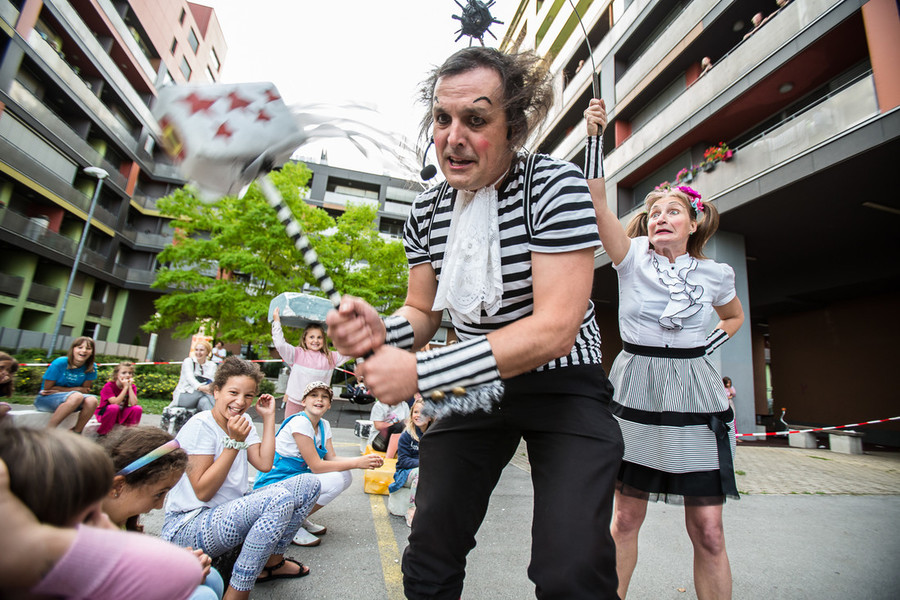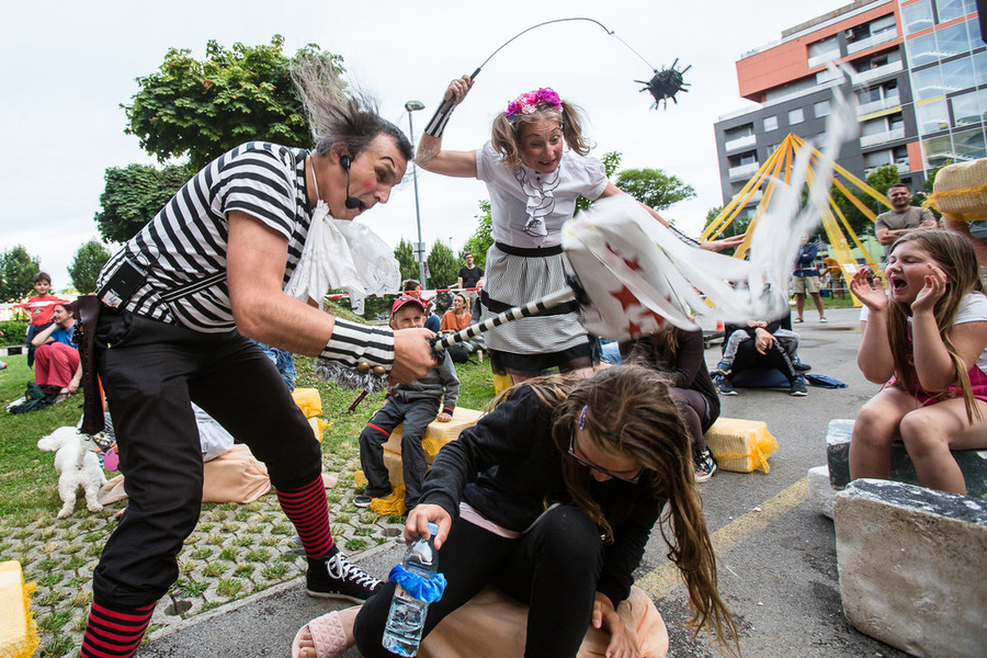 Glasbeno-cirkuška predstava "Oder, cirkus, muzika. Svet je pisan hopsasa." Zabavno poučna pustolovščina o tem, kako sreča cirkus glasbo in kako se jima zgodi predstava. Čarobna predstava z živo glasbo, zvočili in gibom popelje gledalce na rob gravitacije. Skratka, žongliranje, humor in akrobacije za vse generacije.