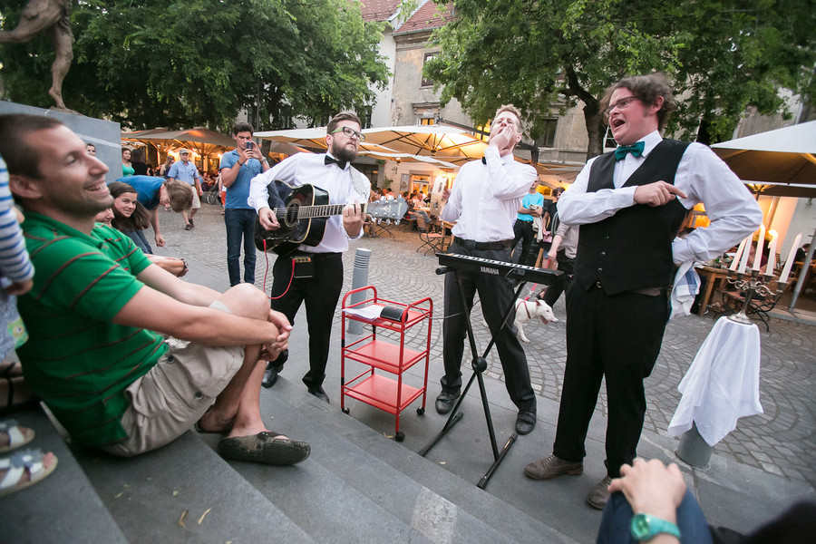 Predstava, ki gledalcem izpolnjuje glasbene želje, na znano glasbo a z improviziranimi besedili, povzdiguje ulično glasbo na nesluteno raven.