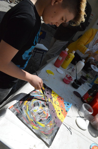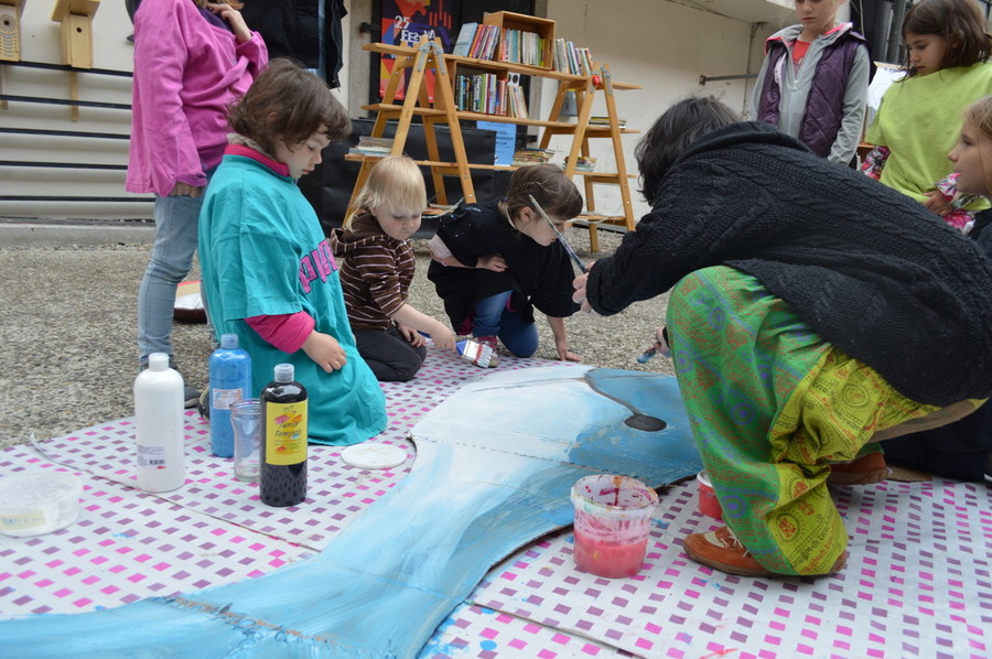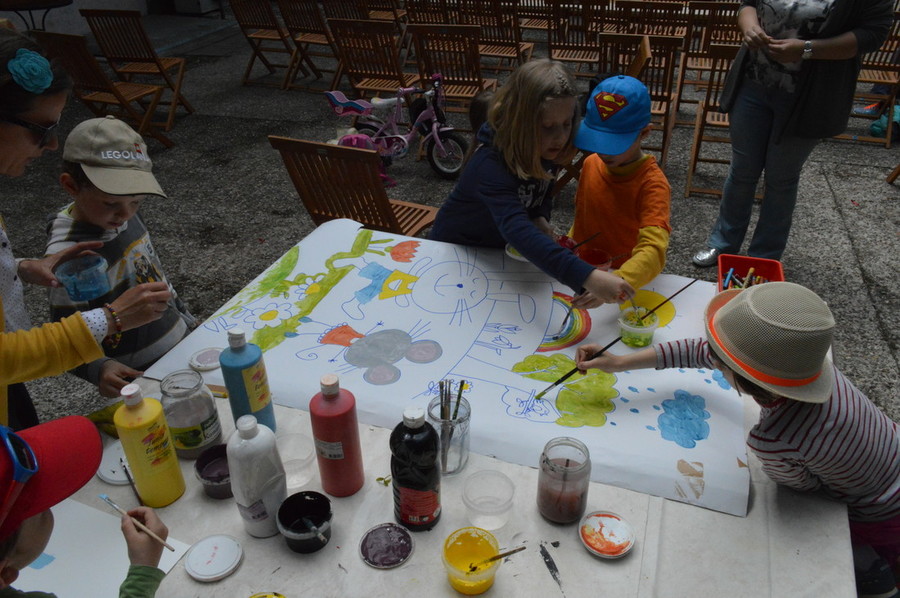 Prazna platna na slikarskih stojalih povabijo na slikarsko delavnico na čudovitem dvorišču Vetrinjskega dvora sredi mesta, ki jo vodi izkušena likovna pedagoginja Irena Pamič. Knjige za branje v udobnih blazinah, glasno branje poezije za male in velike in igra, ki povezuje.