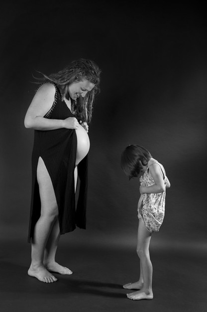 Avtorica fotografira tudi v kombinaciji: nosečnica z otrokom ali nosečnica z bodočim očetom. Ob pogledu na fotografije kakor da začutimo pulziranje dveh src: bitja, ki je in bitja, ki bo. Motivi fotografinje Maje Šivec so ujeti v srčnem vzdušju ali pričakovanju novega življenja, ob pogledu nanje pa začutimo nežnost, dojamemo nedolžnost in hkrati večnost ženskega nosečniškega akta, pri čemer golota zgolj dodatno poudarja prvinskost in napoveduje genezo, veselo oznanjenje novega rojstva.