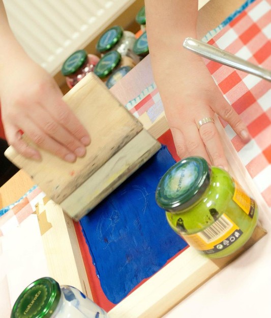 Janja Priveršek bo s seboj prinesla že pripravljene šablone s katerimi boste tiskali, po želji pa boste lahko s pomočjo folije in sita naredili svoje preproste vzorce za enkratno uporabo. Vsak udeleženec delavnice si naj prinese čim več materiala, ki bi ga želel potiskati (blago, majice,...). Tiskali boste lahko z različnimi vzorci in barvami na različne materiale, spoznali boste različne efekte tiskarskih past. Vsak si bo lahko potiskal svoj prtiček, broško, špangico ali magnet. Izdelke