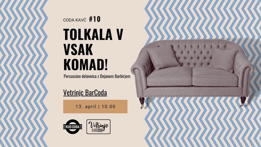 Tako kot ima vsak pisker svoj pokrov, ima tudi vsaka melodija svoj ritem. S shakerji, tamburini, zvonci, cajonom in djembami, ki jih bomo spoznali na jubilejni 10. Coda kavč delavnici, lahko muziki dodamo tisti posebni karakter, za kar pa ne rabimo biti diplomirani bobnarji ali tolkalisti. Delavnica je tako primerna čisto za vse, ki želite začiniti svoje glasbeno ustvarjanje.