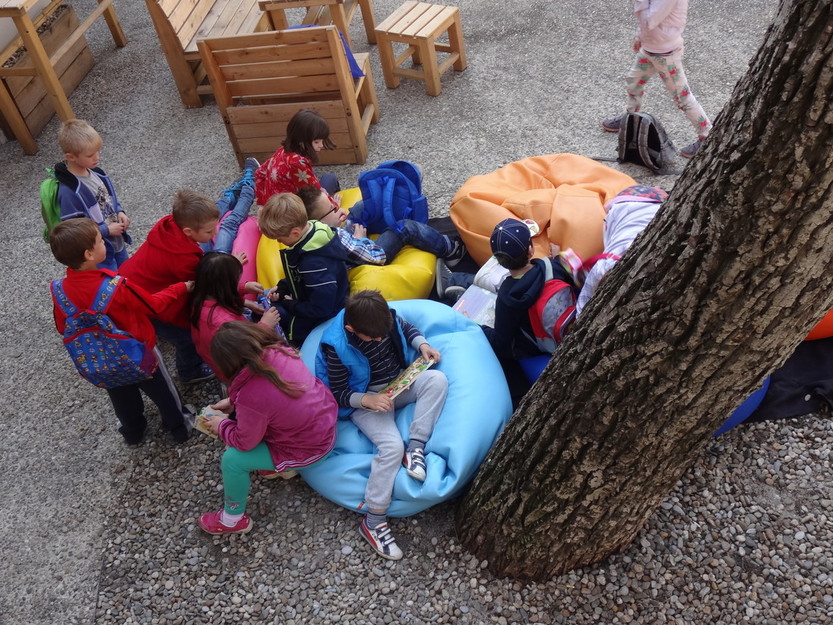 Čitalnica na dvorišču je srečanje s knjigo ter z avtorji in avtoricami otroške in mladinske literature, ki jih ob sobotah, spomladi in jeseni, povabimo pod star oreh, ki živi na dvorišču Vetrinjskega dvora, da nam berejo ali pripovedujejo zgodbe in pravljice, delijo z nami dogodivščine iz svojega življenja, odškrnejo vrata v svet ustvarjanja knjig in se imajo luštno z nami.