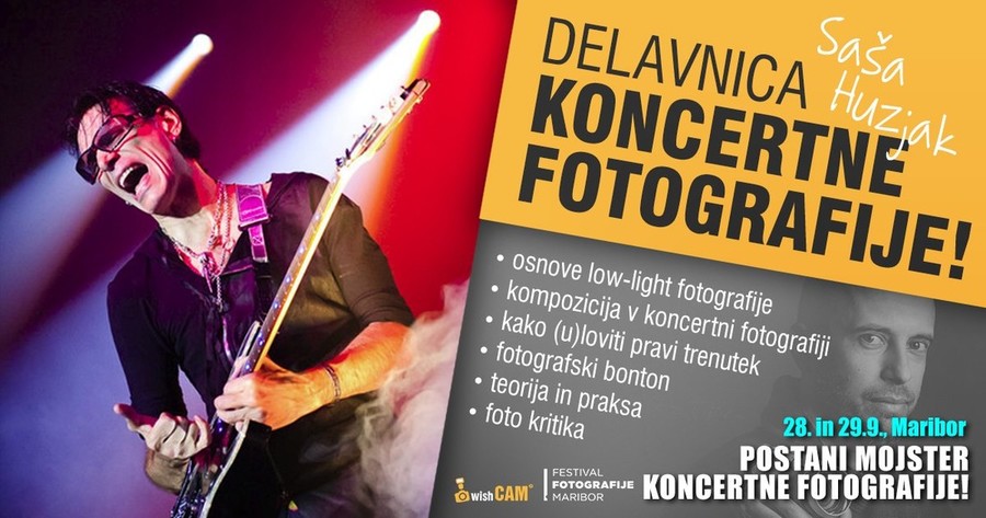 Delavnico bo vodil priznani mariborski glasbeni fotograf Saša Huzjak v sodelovanju z spletnim iskalnikom fotografov WishCAM in Festivalom Fotografije Maribor.
