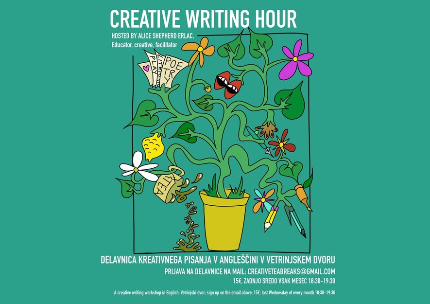 Toda pisanje je način, da bolje spoznate sebe in svoje izkušnje. Jezik je navsezadnje način, kako povzemamo in dekodiramo vse, kar razumemo o svetu. Ure kreativnega pisanja so delavnica prostega pisanja, kar pomeni, da se skozi različne ustvarjalne naloge premikamo hitro in intuitivno. Ni pravega ali napačnega načina pisanja in ni pričakovanja, da boste v času karkoli 'dokončali'.