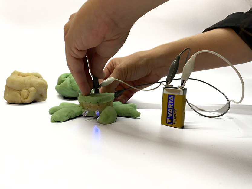 Najprej bomo "skuhali" vilinski plastelin, ki ima eno posebnost – prevaja elektriko! Nato bomo z njim oblikovali različna čudesa, na katerih bodo zasvetile lučke. Ob tem bomo pa še 3D-tiskalniku ukazali, kaj naj nam natisne. Bo znal?
