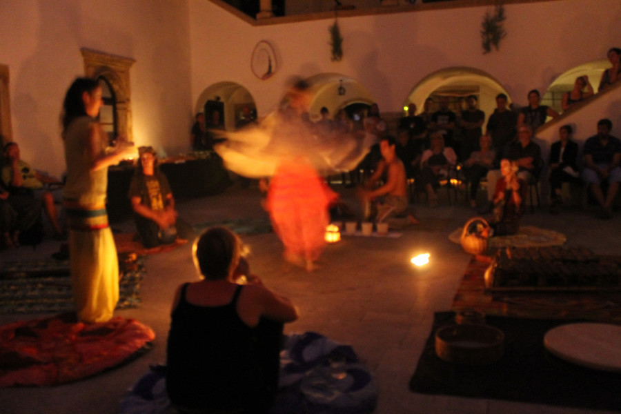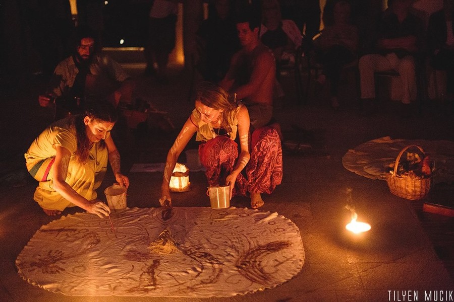 Predniki, sanje in mitologija prežemajo umetniška dela akademske slikarke Alje Krofl in povabljenih umetnikov, ki sledijo podobnim zgodbam. Soustvarjati, sobivati in sočutiti. Na odprtju razstave ustvariti produkt – obred, kjer sodelujemo vsi, povezani z mislijo, čuti in bitjo, tu nastane zvok – glasba, tu vidimo – slika in ples. Obred ob odprtju razstave. Čutno prepletanje likovne, glasbene, plesne in pesniške umetnosti. Poklon prednikom, prebujanje čutov, prvinskost ustvarjalnega procesa in