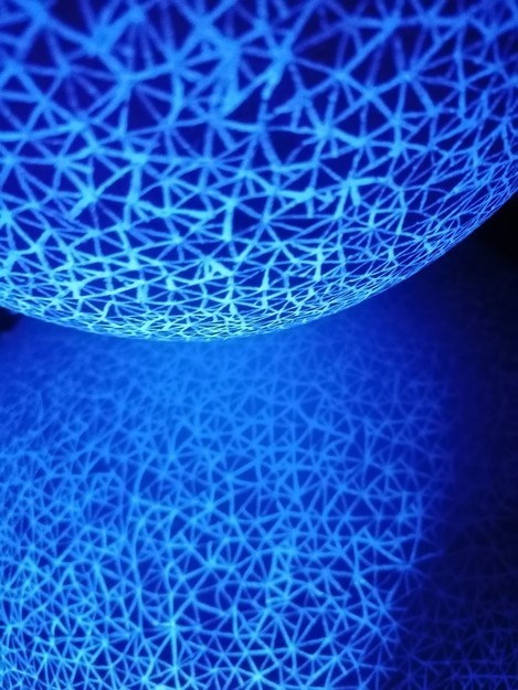 Prostorska postavitev po zamisli umetnic, pod vrhom okrogle strehe Sodnega stolpa, vzpostavlja subtilno območje za čutila. V temnem prostoru odsevajo črtne strukture Nine Šulin in poslikane krogle Natalije R. Črnčec. V modre tone odeta postavitev prepleta umetniške govorice dveh ustvarjalk, ki v sozvočju ustvarjata ločeno, a hkrati nastopata skupaj. Postavitev je v osnovi statična, a postane dinamična tekom premikanja po prostoru. Poglobljeno doživljanje prostora je podprto z avtorsko glasbo JUNEsHELEN, ki krepi občutek breztežnosti.