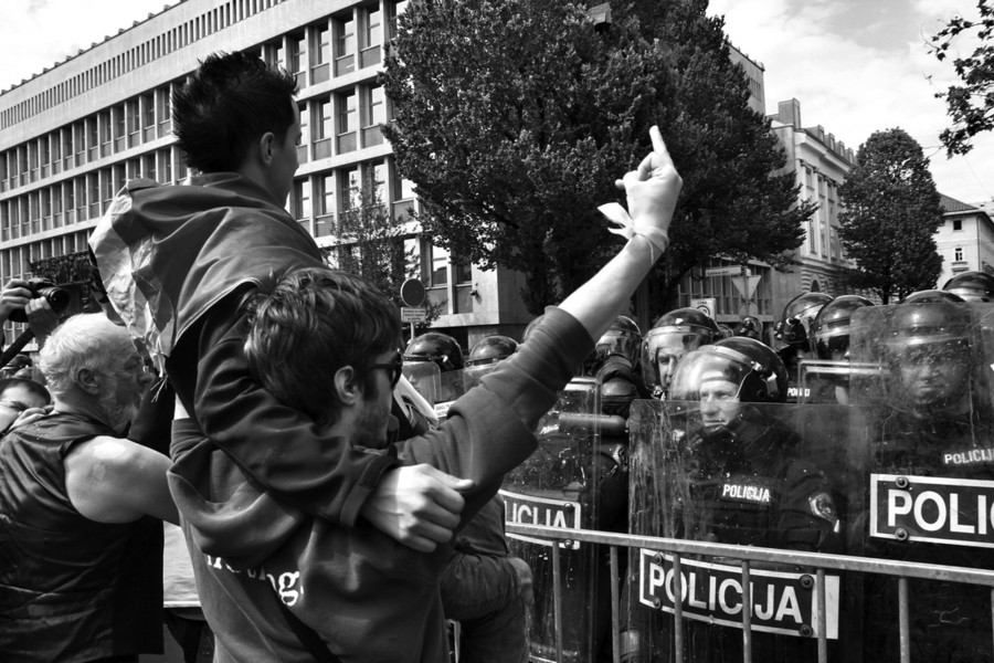 Urban Babnik izpostavlja predvsem tiste plati javnih dogodkov ali krajev, ki so v uradni kronologiji namenoma spregledani. Serija iz leta 2012 je trenutno zelo aktualna, avtor pa poudarja predvsem moč neubogljivih množic, kjer si posamezniki dovolijo več, kot bi si upali sicer: selfiji s policijo v ozadju, slačenje v javnosti, žaljiva gestikulacija in podobno. Protest je ventil za prepovedane misli, ki iz osebnega prodrejo v prostor javnega. Konflikt med tem dvojim, zasebnim (intimnim) in javnim pa največkrat uresničujejo tabuji in perverzije.