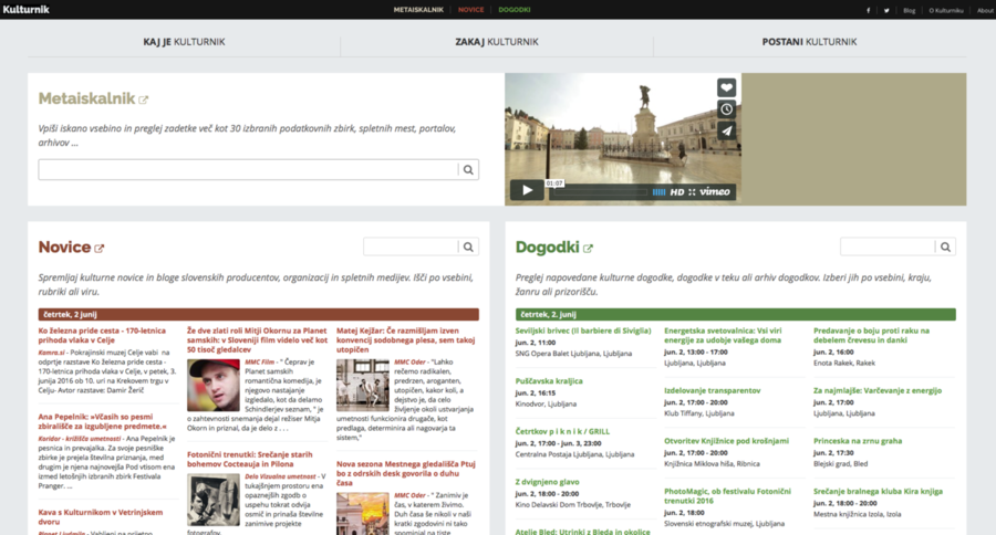 Slovenska kultura na svetovnem spletu? Kje jo iščete in kako jo najdete? Na spletišču svojega najljubšega gledališča, v poplavi objav na Facebooku, v kulturnih rubrikah peščice medijev, ki jo sploh še pokrivajo, ali nemara na blogu upokojenega novinarja v kondiciji? Tako občinstvo kot producenti se vsak po svoje soočamo in spopadamo z razdrobljenostjo, nepreglednostjo in oteženo dostopnostjo slovenske kulture v splošni poplavi spletnih vsebin.