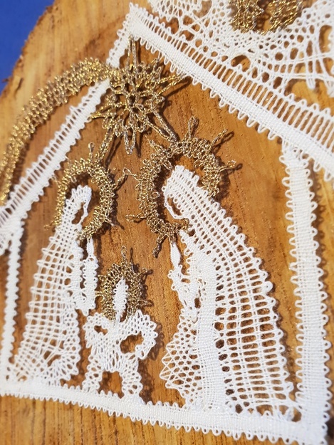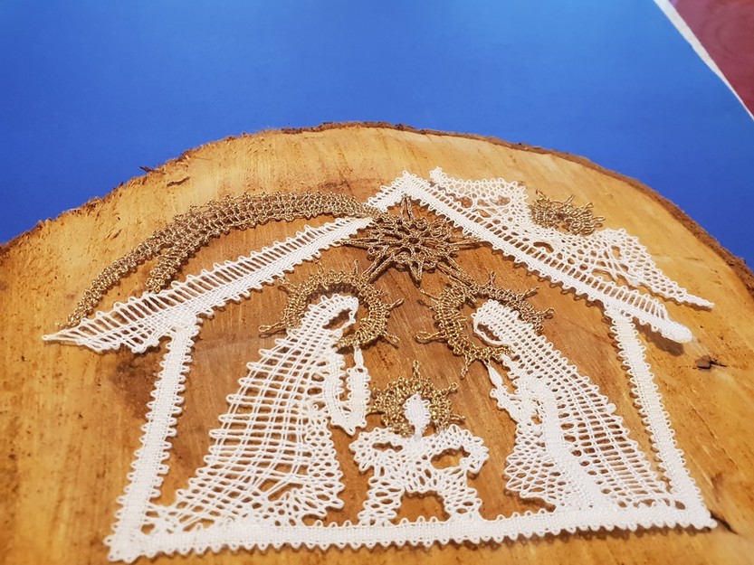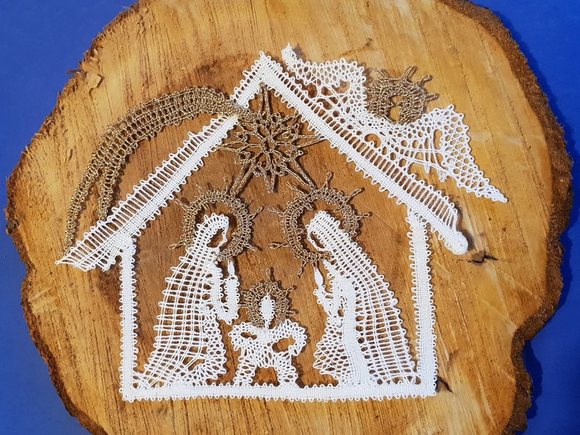 Pri klekljanju jaslic je zaplesalo osem parov klekljov, s sukanjem in križanjem zlate in bele niti, ki gladko tečeta do svojega simbola, pripetega na mehko blazino. Jaslice, simbol družine. Rojstvo novega življenja, v krogu ljubezni, miru in povezanosti.