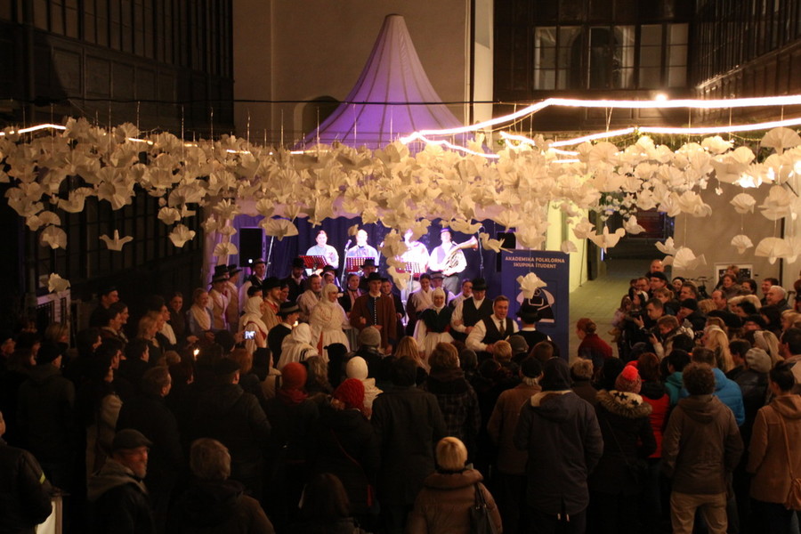 Iskrivost prazničnih dni je tudi v pesmi, ki se širi po ulicah mesta, da postanejo pravljične. Petje povezuje ljudi, saj "kdor poje, dobro misli". Zapojmo s koledniki mariborskih otroških in odraslih pevskih zborov, postojmo, prisluhnimo. Zaželimo si kaj lepega, preprostega v tem čarnem času druženja.