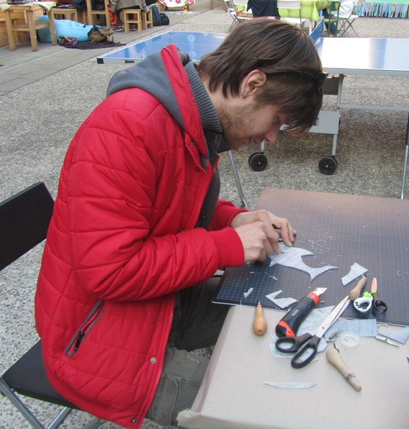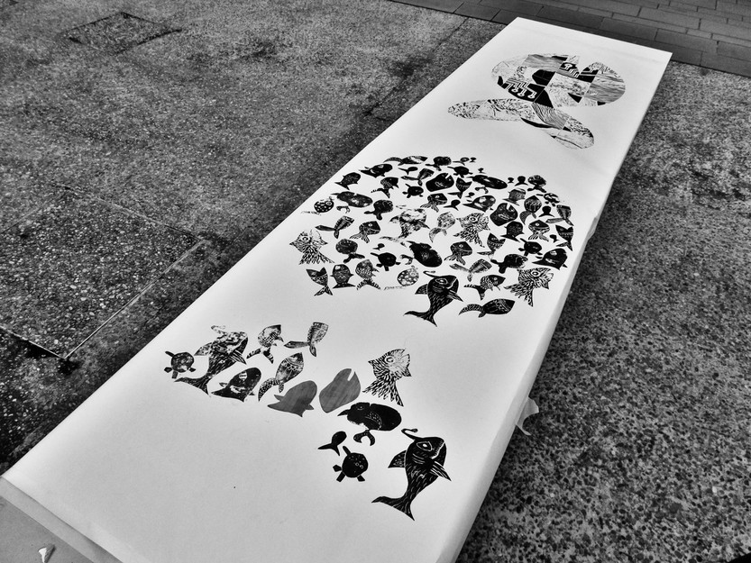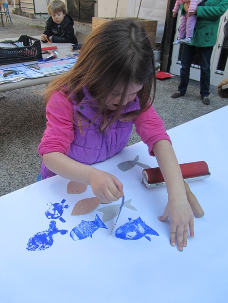 Lino-puzzle smo iznašli na pripravah za Dan za spremembe. Gre za linorez, pri katerem se uporablja več manjših linolejev, ki jih lahko oblikuje in izreže en sam ustvarjalec ali pa poljubno število soustvarjajočih. Pomembno je le, da za vse matrice (linolejčke) uporabimo isti ali podoben motiv, iz katerega oblikujemo enega ogromnega, ki ga lahko vsakič znova sestavimo in odtisnemo v poljubni verziji. Na primer: prvi odtis sestavimo samo iz svojih izdelkov, drugi odtis pa je skupinsko