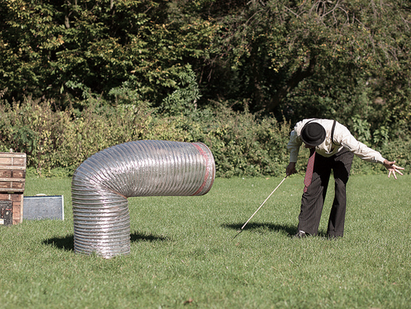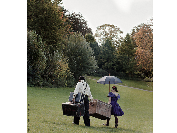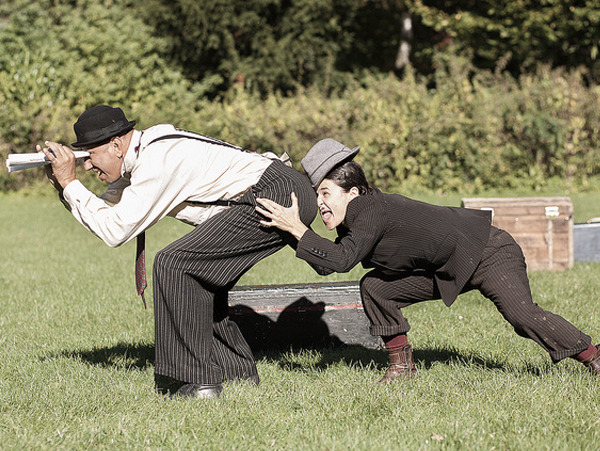 Igralca nas popeljeta v svet nemega filma, ki je na meji med sanjami in realnostjo. Za komunikacijo z občinstvom uporabljata svoje telo, gibanje in mimiko obraza, skozi katero počasi gradita nemi dialog, ki premika meje plesa in gledališča. Klovn, ki ga po trgu lovi velika srebrna cev, ženska, oblečena kot moški, ki zaspi, ko v rokah še vedno drži dežnik … začne deževati, imajo čajanko. Nič ni, kot se zdi na prvi pogled v tem srečanju klovna in balerine,
