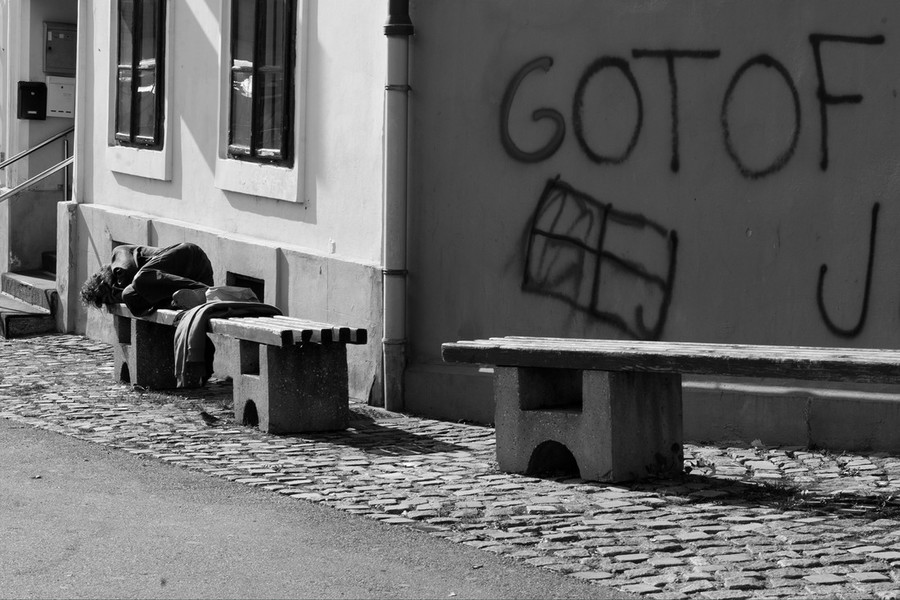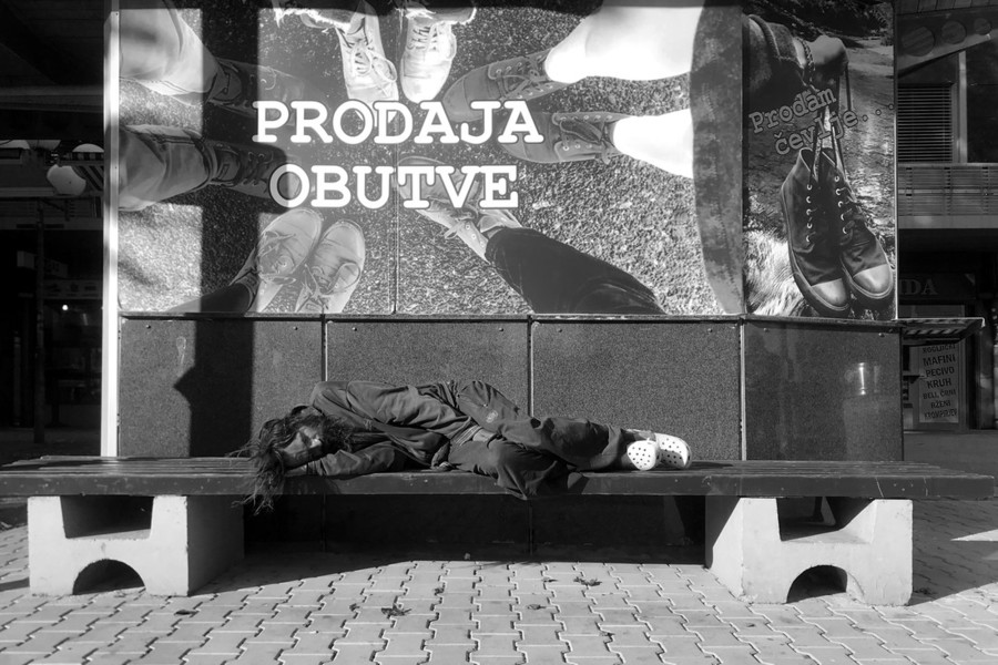 Že kar nekaj časa se vrstijo pozivi, naj zaradi hitrega širjenja virusa vsi ostanemo doma, če poti zunaj njega niso res nujne. Ob tem pa se le redkokdo vpraša, kaj je s tistimi, ki nimajo doma. Brezdomci so v teh časih zelo ranljiva skupina. Dnevni centri za brezdomce so zaprti, tudi jedilnice. Zavetišča delujejo po drugačnih pravilih, ne sprejemajo več novih ljudi, vse, ki imajo prostor v njih, pa prosijo, naj ne hodijo ven, da ne prinesejo virusa. Včasih so se brezdomci mrazu lažje umaknili kot danes. Čez dan so šli v trgovske centre, knjižnice – zdaj to ni mogoče, še posebej ponoči je težava, saj je večina blokov zaklenjenih in ni več dostopa do kleti, kjer so pred epidemijo še našli zatočišče. Upanje, da so vsi tisti brezdomci, ki ne živijo v zavetiščih, vsaj približno na toplem oziroma v nekem varnem zavetju, da torej v teh nočeh niso na prostem, razkrivajo fotografije Maje Šivec, je marsikdaj jalovo. Fotografija brezdomca, čez dan spečega na cesti pred grafitom "gotof je", ne ponuja upanja. Žalostno, da zaboli srce.