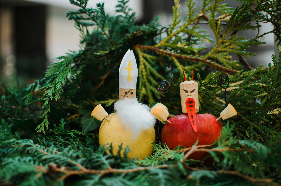 Letos bomo mi presenetili Miklavža z darilcem. Iz jabolka in plutovinastega zamaška bomo izdelovali podobe Miklavža in parklja za prikupno dekoracijo ali zdravo darilo.