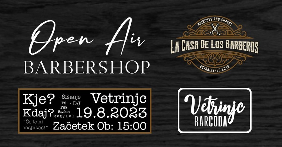 Pridružite se nam na dogodku brivnice La Casa de los Barberos na prostem, ki bo potekal v živahnem Vetrinjcu. To je mešanica sloga in sonca, kjer se vaši lasje srečajo s hladnim vetrom. Naj škarje strižejo in vibracije tečejo, saj vam prinašamo najbolj kul brivsko izkušnjo v mestu. Ne zamudite brivskih mojstrovin, dobrih melodij in odlične družbe. Se vidimo tam!