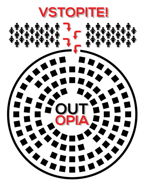 Takšen scenarij ponuja Outopia, interaktivna predstava, ki vabi udeležence, da preizkusijo slasti in pasti političnega odločanja. Kdo izmed nas še ni pomislil, da bi sam gotovo bolje vodil državo kot pa t.i. demokratično izvoljeni politiki, ki nam vladajo? Tu je priložnost, da se poizkusite v praksi. Postanite poslanci novega ljudskega parlamenta Outopie in tvorno sooblikujte prihodnost države. Moč je končno v vaših rokah. A pozor, moč prinaša tudi odgovornost. Se vam bo posrečilo premagati