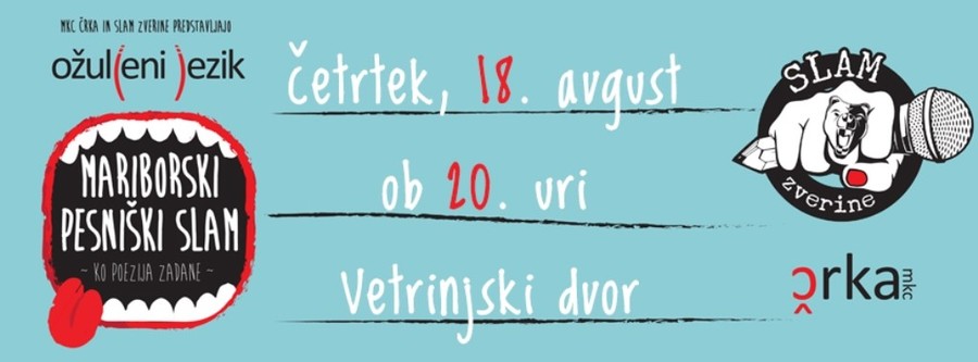 Tokrat se pesniki, ki nas žulijo jeziki, selimo v poletno atmosfero in na dvorišče Vetrinjskega dvora pod milo nebo. (Razen v primeru slabega vremena. V tem primeru bomo kar noter, ker smo občutljive duše.)