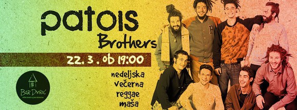 Ekipa pravih reggaeašev se je lani v Mariboru predstavila že na festivalu Etnika 2014. Po lanskih super odzivih, se bodo Patois Brothers ponovno in z veseljem ustavili in igrali v Mariboru, v Kulturnem klubu Dvorec. Dogodek bomo začeli malo hitreje inna dj stile, glede na to da je nedelja, bo prava večerna reggae maša !