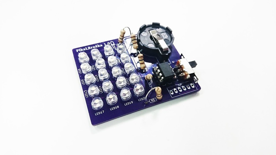 Naša oblačila povedo veliko o nas, a nobeno ne pove toliko kot PiksLBroška. Z njo lahko namreč točno določimo, kaj bo povedala in ni nujno, da pove kaj o tebi, lahko izpiše katerokoli besedilo, ki ga bomo sprogramirali v njen čip. Na delavnici bomo poleg ostalih elementov v vijoličasto ohišje spajkali tudi majhne led lučke, ki bodo tvorile ekranček večjih "pikslov" in bodo prikazovale tekst ali pa celo preproste animacije.