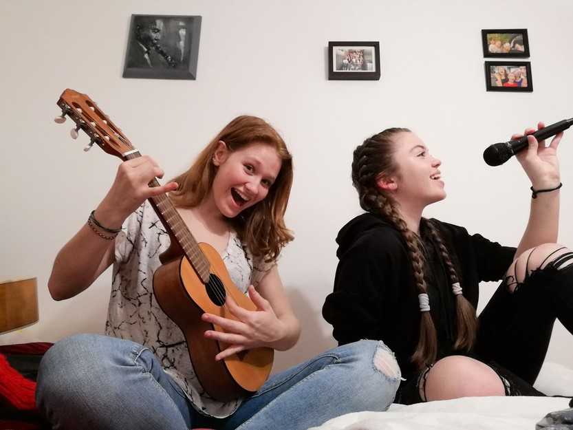 ELYSIAN sta Zara Bajde, vokal in Stela Gašparič, kitara - duet dveh mariborskih dijakinj z imenom iz grške mitologije, ki preigrava pesmi iz sveta pop glasbe.