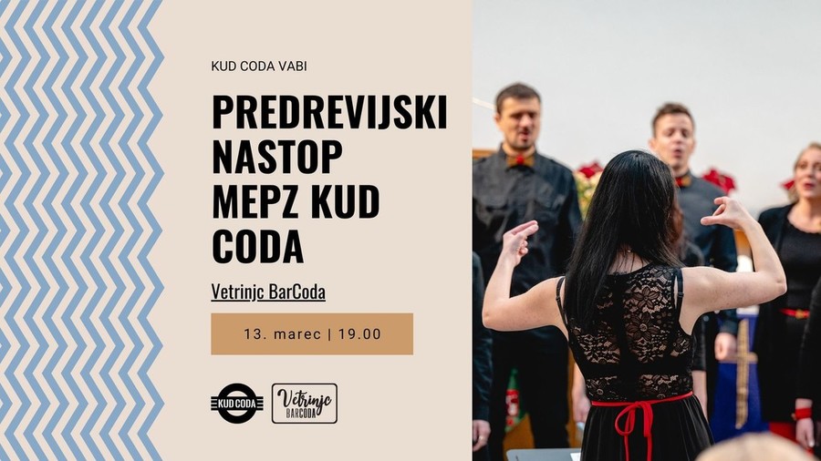 Pred letošnjo revijo pevskih zasedb Codovci lepo vabimo na pripravljalni nastop naših pevk in pevcev, ki jih povezuje MePZ KUD Coda pod vodstvom Lee Gačnik. Vabljeni, da prisluhnete letošnjemu zanimivemu in zahtevnemu programu. Dobrodošle bodo vse pohvale in bučni aplavzi, da bo naša ekipa pripravljena na misijo Unionska dvorana 2024.