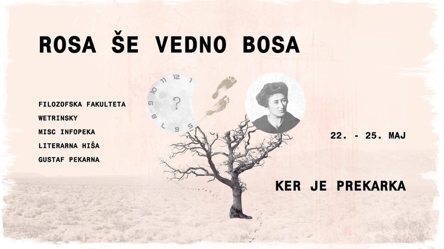 Rosa še vedno bosa (ker je prekarka) je izobraževalni cikel, ki letos poteka že tretjič in to od 22. do 25. maja na različnih lokacijah v Mariboru (Literarna hiša Maribor, Filozofska fakulteta Maribor, AGD Gustaf, Vetrinjski dvor in Pekarna Magdalenske mreže).