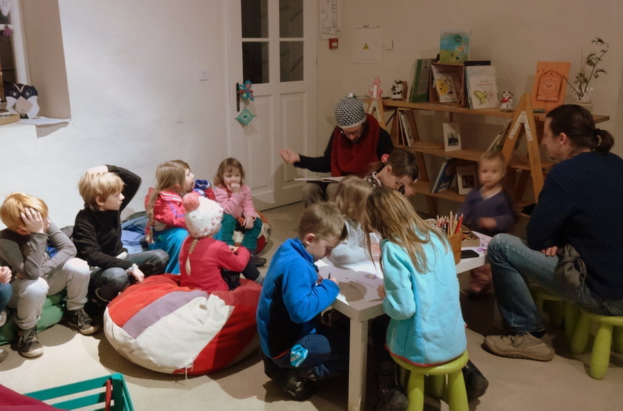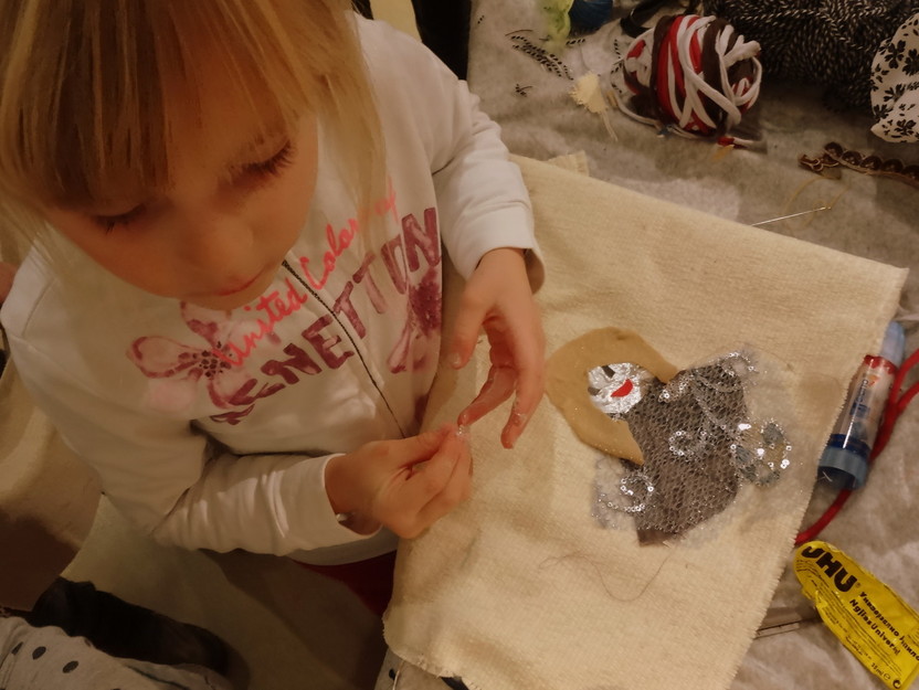 V Igralnici čitalnici Mala likovna, čisto mala likovna delavnica, za vilinko in vilinca! Slikanje s prstki, naravnimi barvili, tiskanje s štempli, kolaž, frotaž in luščenka, pa še praskanje, risanje, decembrski možje in zimska pravljica!