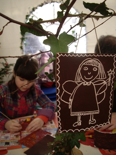 V Igralnici čitalnici Mala likovna, čisto mala likovna delavnica, za vilinko in vilinca! Slikanje s prstki, naravnimi barvili, tiskanje s štempli, kolaž, frotaž in luščenka, pa še praskanje, risanje, decembrski možje in zimska pravljica!