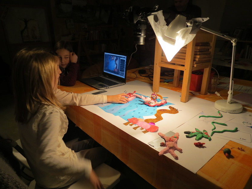 Delavnice potekajo 1x tedensko in ponujajo raziskovanja različnih tehnik animiranega filma, snemanje gibljivih slik, zvoka ter "pripovedovanje" zgodb in kratkih idej v obliki animacije.