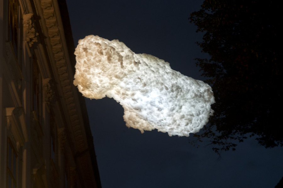 Nad mesto se zgrinjajo nenavadni oblaki: čez dan nudijo senco, ponočnjakom pa razsvetljujejo pot.