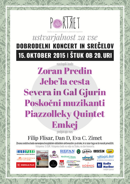 Društvo za razvoj kreativnosti in potenciala – Portret organizira dobrodelni koncert, s katerim zbirajo sredstva za nadaljevanje Projekta Metulj v šolskem letu 2015/2016.