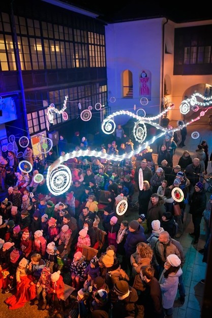 Dobrodošli! Mali in veliki, vile in vilinci in vsi, ki boste to šele postali! Dobrodošli mamice, atiji, babice in dedki, tete in strici! Dobrodošli vsi, ki verjamete v praznike polne topline, druženja, umetnosti in ustvarjanja. Vsi, ki vam ni do ihtavega tekanja po trgovskih centrih in raje preživljate sproščene trenutke ob ustvarjanju z najdražjimi, ob dobri glasbi in skodelici čaja. Vsi, ki namesto v kričave reklame raje zrete v svetlobne umetnine priznanih umetnikov ali čisto svoje umetnine ustvarite sami! Vsi, ki ne marate pokanja petard, zato boste raje prisluhnili pravljici ali ob norčijah uličnih gledališčnikov pokali – od smeha!