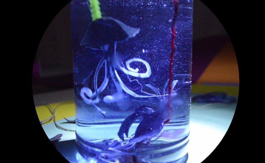 Ta delavnica nas bo popeljala v čudežni podvodni svet. Izdelali bomo podvodne živali – lutke na palici – jih potopili v vodo, ki jo bomo obarvali z različnimi barvami in jih animirali. Opazovali bomo, kako se lutke počutijo v vodi in ali so rak, morski konjiček in ježek pod vodo hitrejši ali počasnejši?