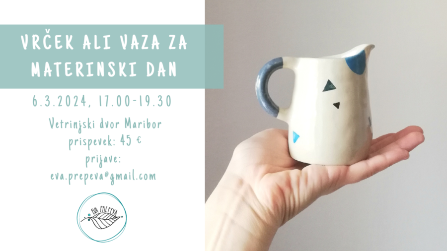 Na lončarski delavnici bomo v prostoročni tehniki zvijanja kačic iz gline izdelali večjo vazo ali vrč za vodo. Delavnica je primerna tako za začetnike, kot tudi za tiste, ki ste glino že kdaj imeli v rokah. Izdelki bodo pripravljeni, odžgani in poglazirani do materinskega dne ( 25. marec), tako da bodo lahko lepo darilo dragim mamam ob njihovem prazniku. Na delavnici se bomo osredotočili na obliko izdelkov ter na obdelovanje površine z različnimi modelirskimi tehnikami.
