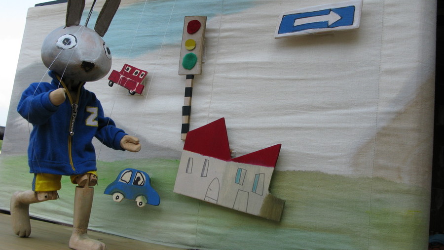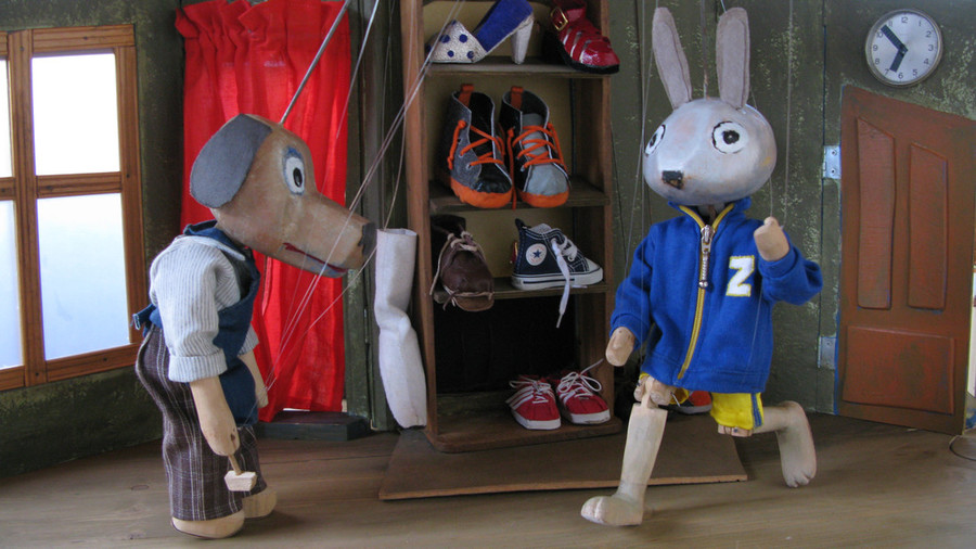 Peterlin, dodatno popestri igra rekvizitov. Z lutkami in rekviziti se bosta poigrala Andrej Štular in Petra Stare, mi pa bomo izvedeli, ih, … kaj? Zakaj teče pes za zajcem.