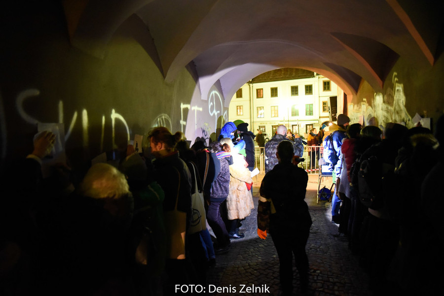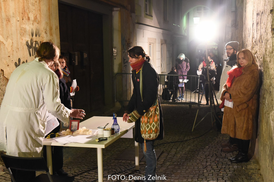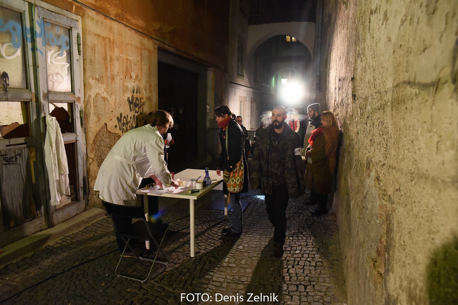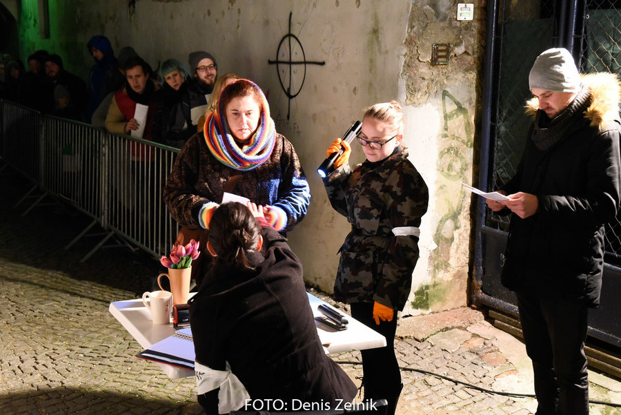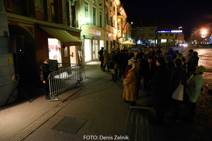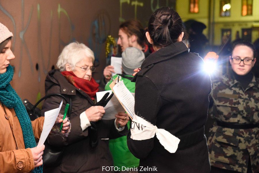 Nevsiljivo, skoraj subtilno nas je domača ulična skupina preizprašala po osebni lestvici moralnih vrednot. Smo tolerantni ali polni predsodkov? Nas drugačen drugi iritira ali se še spomnimo polpretekle zgodovine in znamo pristopiti na pomoč? Šokantna ulična predstava vleče paralele iz romana kriznega poročevalca Boštjana Videmška – Na begu – moderni eksodus 2005–2016: z begunci in migranti na poti proti obljubljenim deželam. Decembrski čas je pravšnji, da nas opomni na vseobsegajočo pravico
