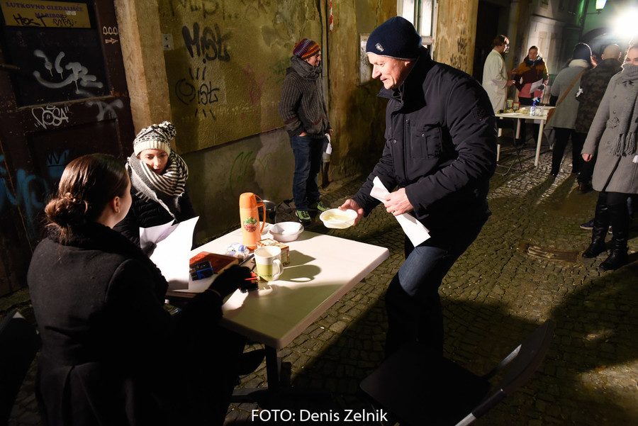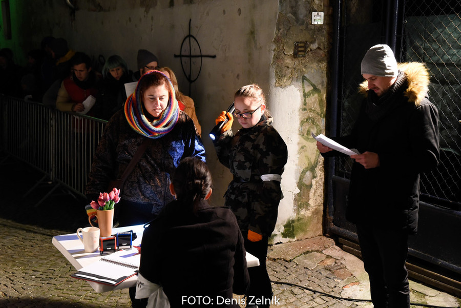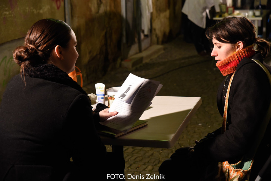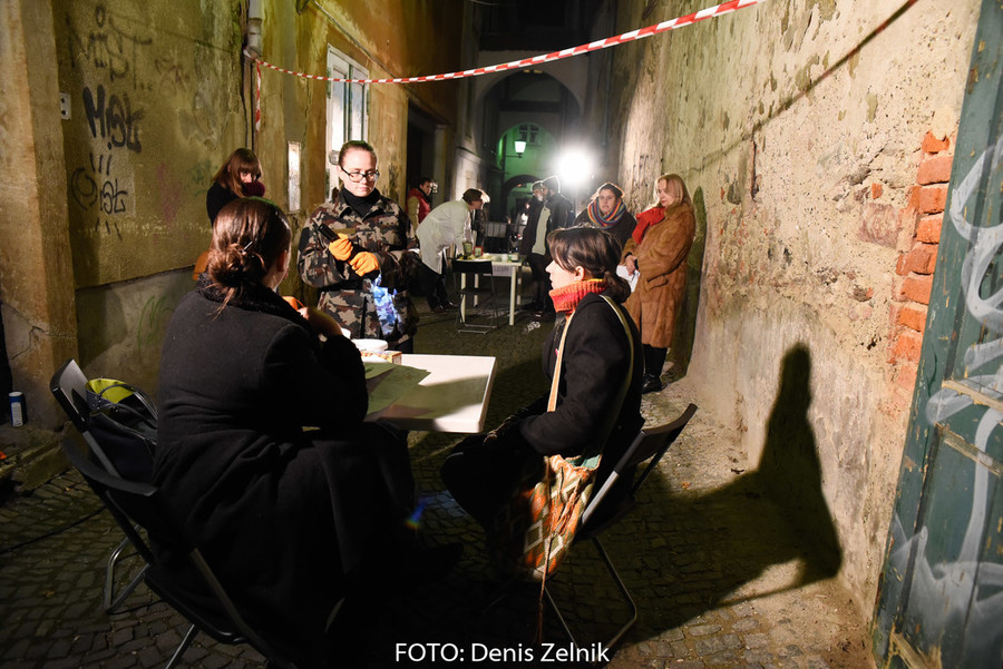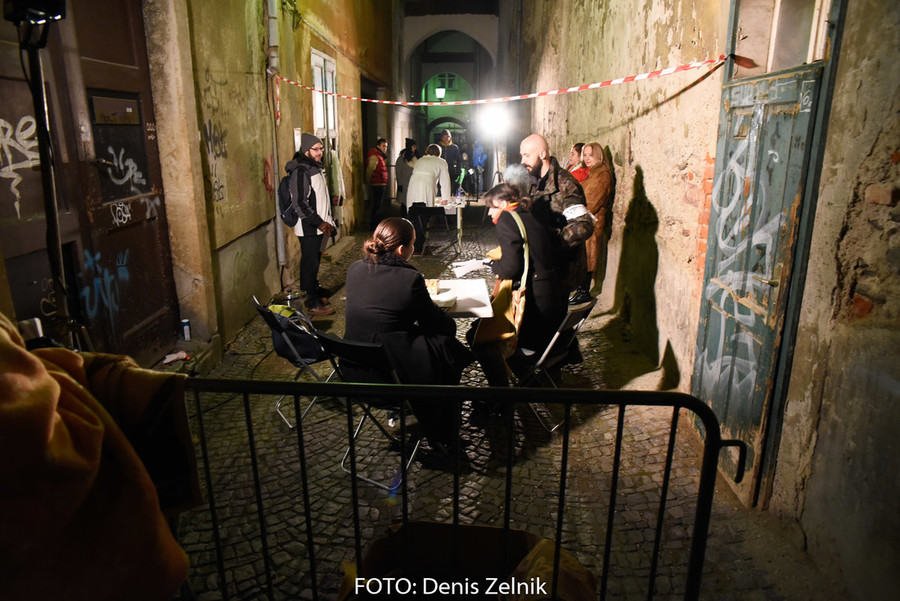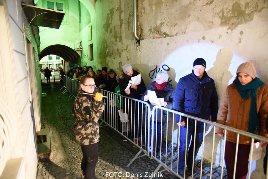 Nevsiljivo, skoraj subtilno nas je domača ulična skupina preizprašala po osebni lestvici moralnih vrednot. Smo tolerantni ali polni predsodkov? Nas drugačen drugi iritira ali se še spomnimo polpretekle zgodovine in znamo pristopiti na pomoč? Šokantna ulična predstava vleče paralele iz romana kriznega poročevalca Boštjana Videmška – Na begu – moderni eksodus 2005–2016: z begunci in migranti na poti proti obljubljenim deželam. Decembrski čas je pravšnji, da nas opomni na vseobsegajočo pravico
