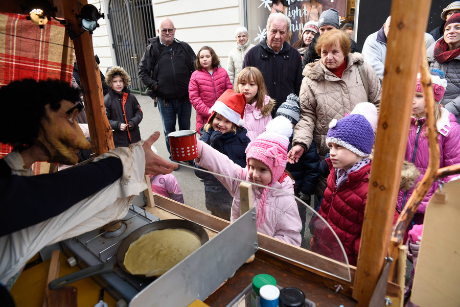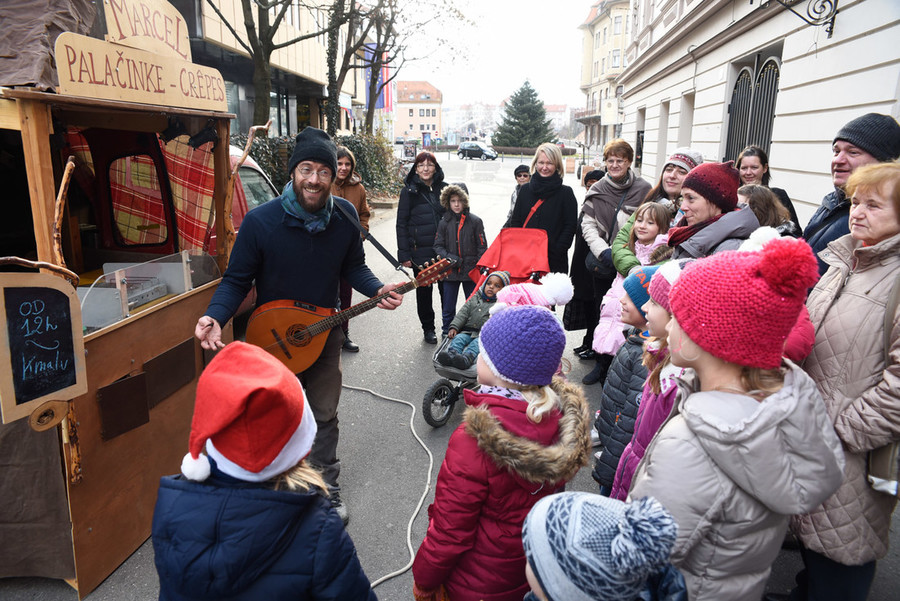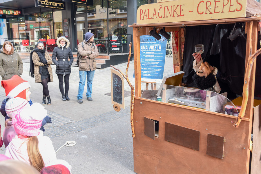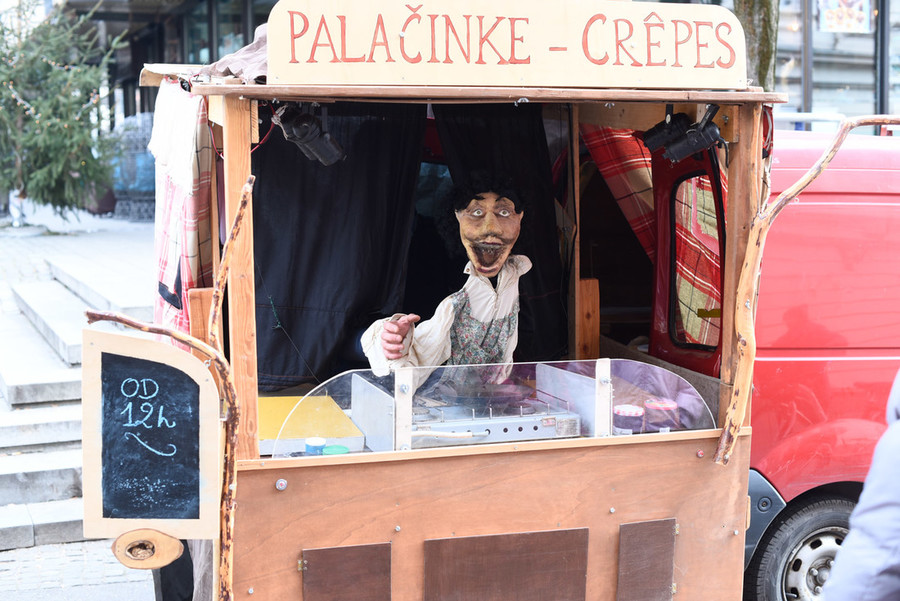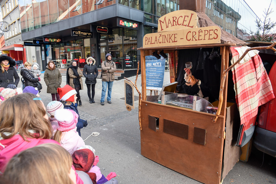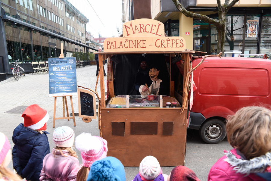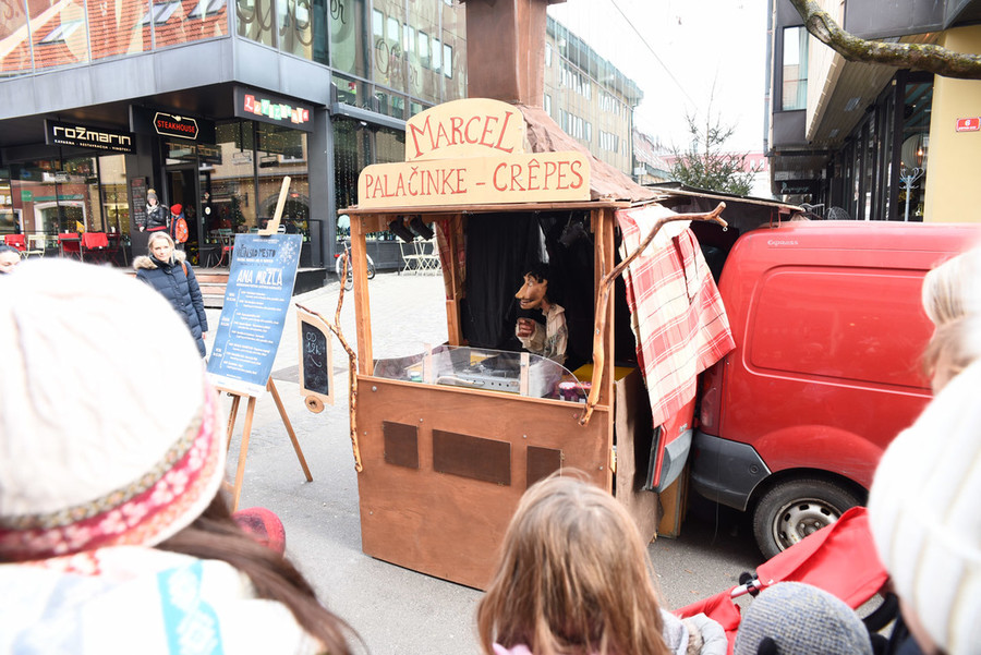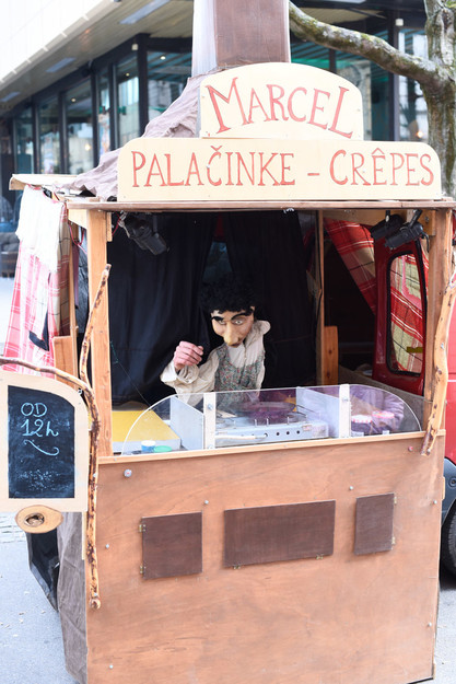 V ulični lutkovni predstavi za sladokusce smo spoznali Marcela, palačinkarja iz družine s stoletno tradicijo peke palačink, ki se je iz Bretanije preselil v Slovenijo. Slane in sladke palačinke je pekel kar v predelanem avtomobilu, ki ga je parkiral na Gosposki ulici. V polomljeni slovenščini je otresal svojo ljubko ošabnost, med peko so se dogajale tudi nepredvidljive reči ...