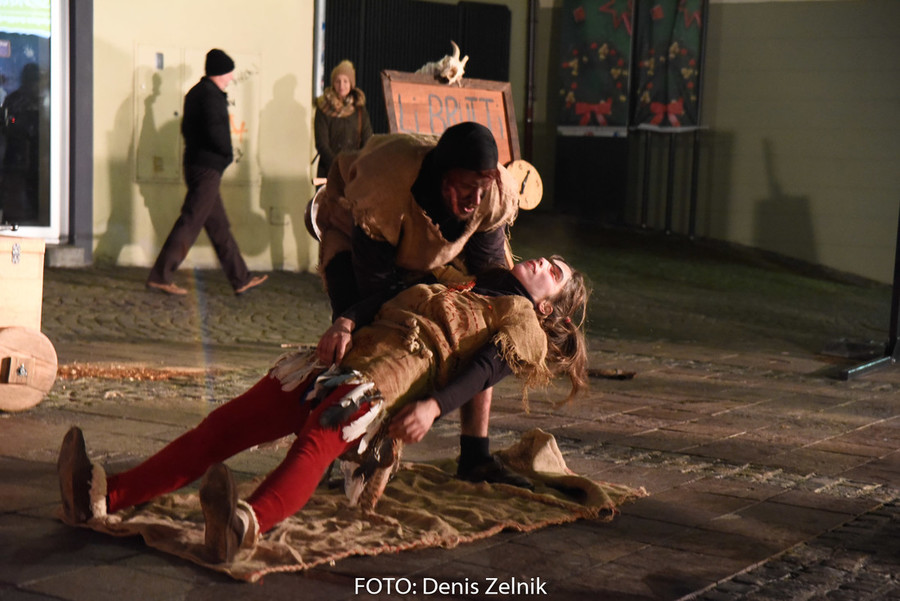Kaj se zgodi ko se srečata grda, umazana, nekoliko vulgarna, a neškodljiva suroveža Barabba in Sambuca, čuden par, ki ju je na ulico zaneslo naravnost iz srednjega veka? Njun dom so prašne ceste in glasne krčme, daleč od gradov in princes, polne resničnih ljudi, njuna ljubezen pa žoge, keglji in ognji in vse, kar lahko še po zraku leti. V improvizirani interakciji z gledalci pišeta šaljive in iskrive zgodbe.