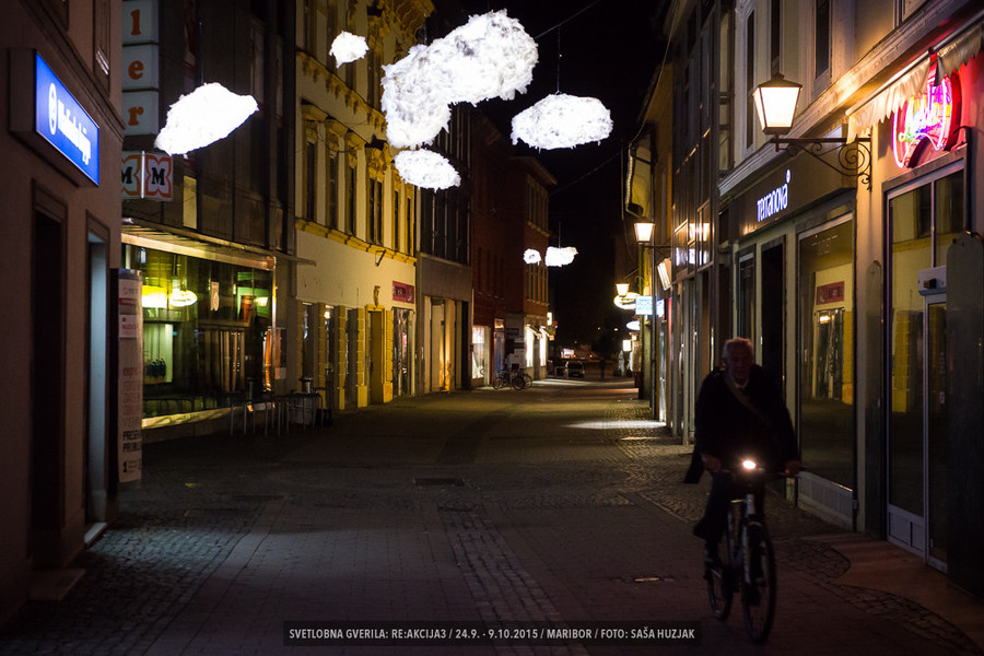 Svetloba nam odpira drugačne poglede na mestno tkivo, preganja sence, zbuja upanje, predvsem pa omogoča svež pogled in novo rabo vsega tistega, kar se kot samoumevno sicer tako rado zabriše v enolično neopaznost vsakdana. Re:Akcija3 je v Maribor prinesla izbor del predvsem slovenskih avtorjev, ki z različnimi avtorskimi pristopi preobražajo običajni videz arhitekture in urbanih mikro─ambientov.